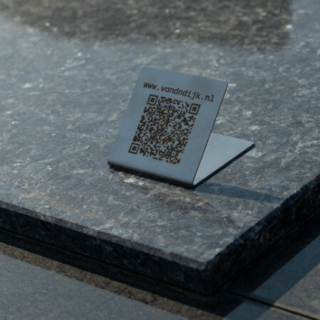De bordjes met de QR code hebben een L-vorm met een hoek van 50 graden. Ze zijn gemaakt van stevig RVS. De QR code is er in zwart ingegraveerd. Het vlak met de QR code is 7 bij 7 cm groot. Ook het vlak waarop het bordje wordt neergezet is 7 bij 7 cm groot. Dit stavlak is voorzien van dubbelzijdige tape. Het bordje kan vastgezet worden met deze tape of er kan voor gekozen worden het stavlak te verzwaren met een steen.