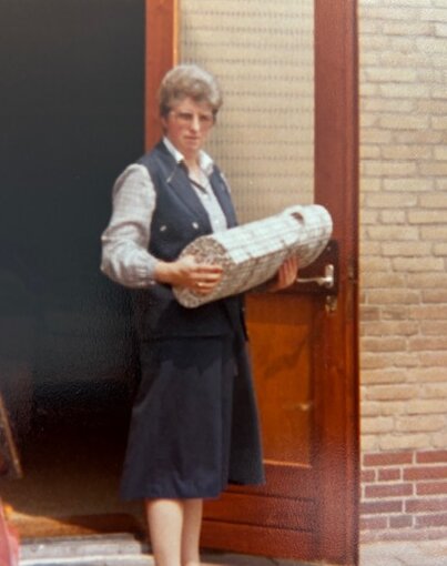 Corry bij haar ouderlijk huis in Uppel