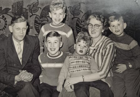 vlnr: Sijb, Paul en Jan, Ries, Marie en Wim.